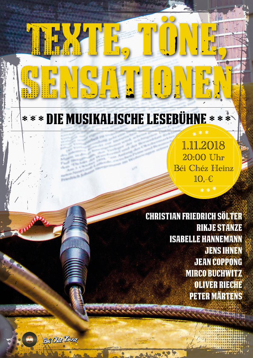 Seit März initiiert ein Team aus AutorInnen, HörspielmacherInnen, Musikfreaks und MusikerInnen aus Hannovers Kreativszene im Béi Chéz Heinz Hannover eine musikalische Lesebühne, ein Meet and Greet mit der Poesie, ein musikalisches Oktett, das sich durch längst vergessene Platten wühlt, Konzerte seziert und fühlbar macht, was Backstage so schief geht.